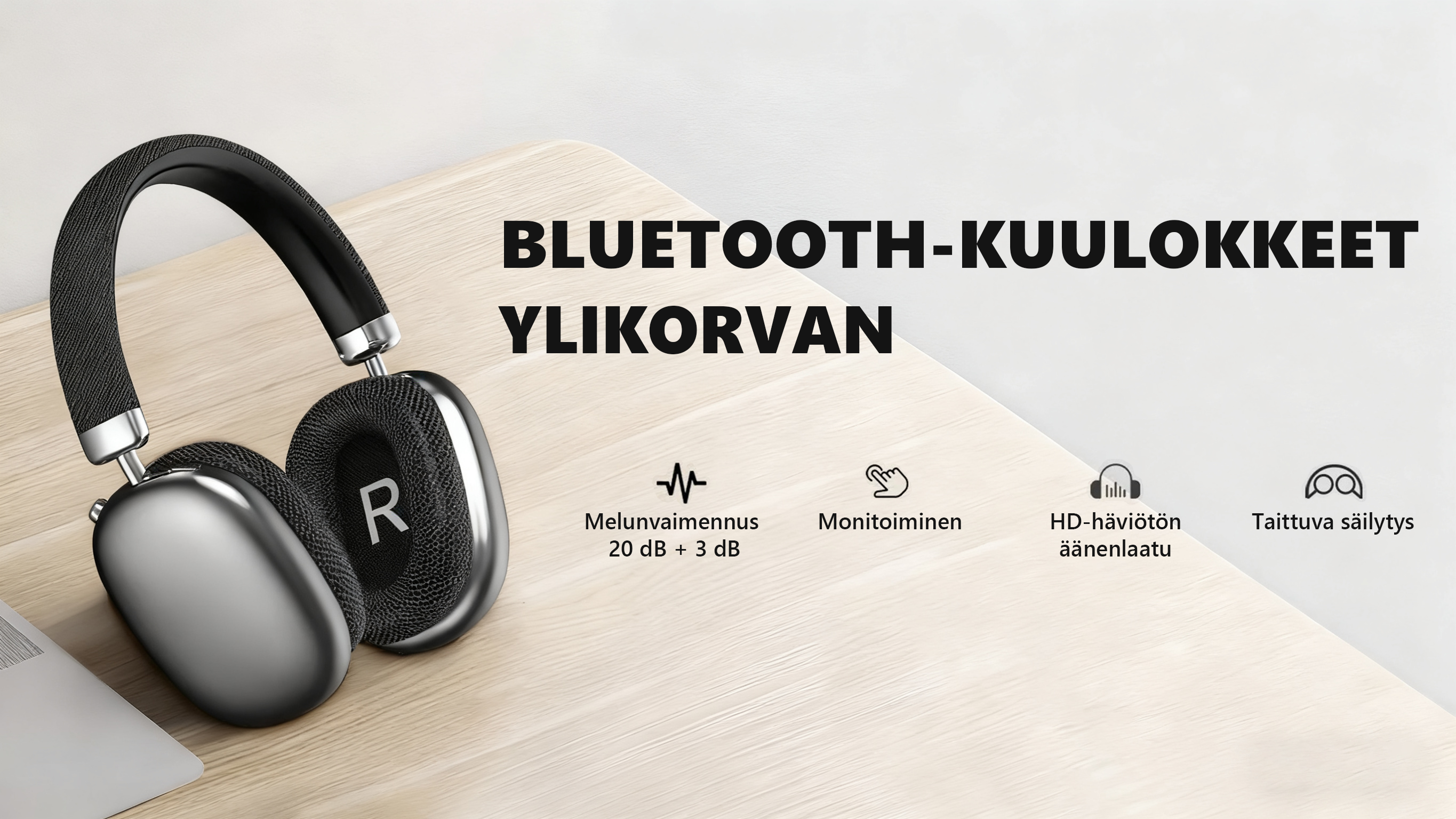 - Erinomainen käyttömukavuus – Kevyt rakenne ja pehmeät tyynyt takaavat miellyttävän tunteen pitkissäkin kuuntelusessioissa.